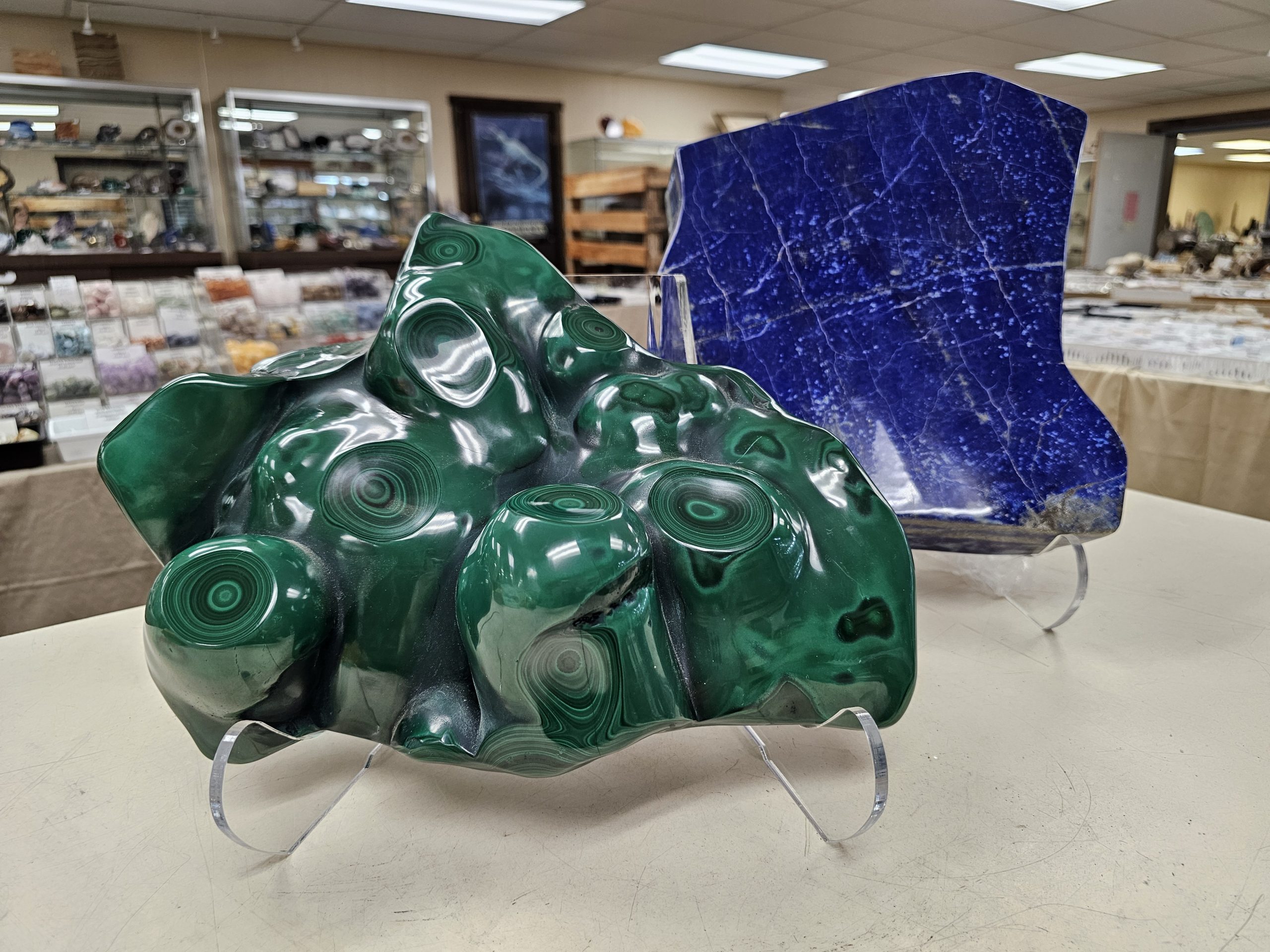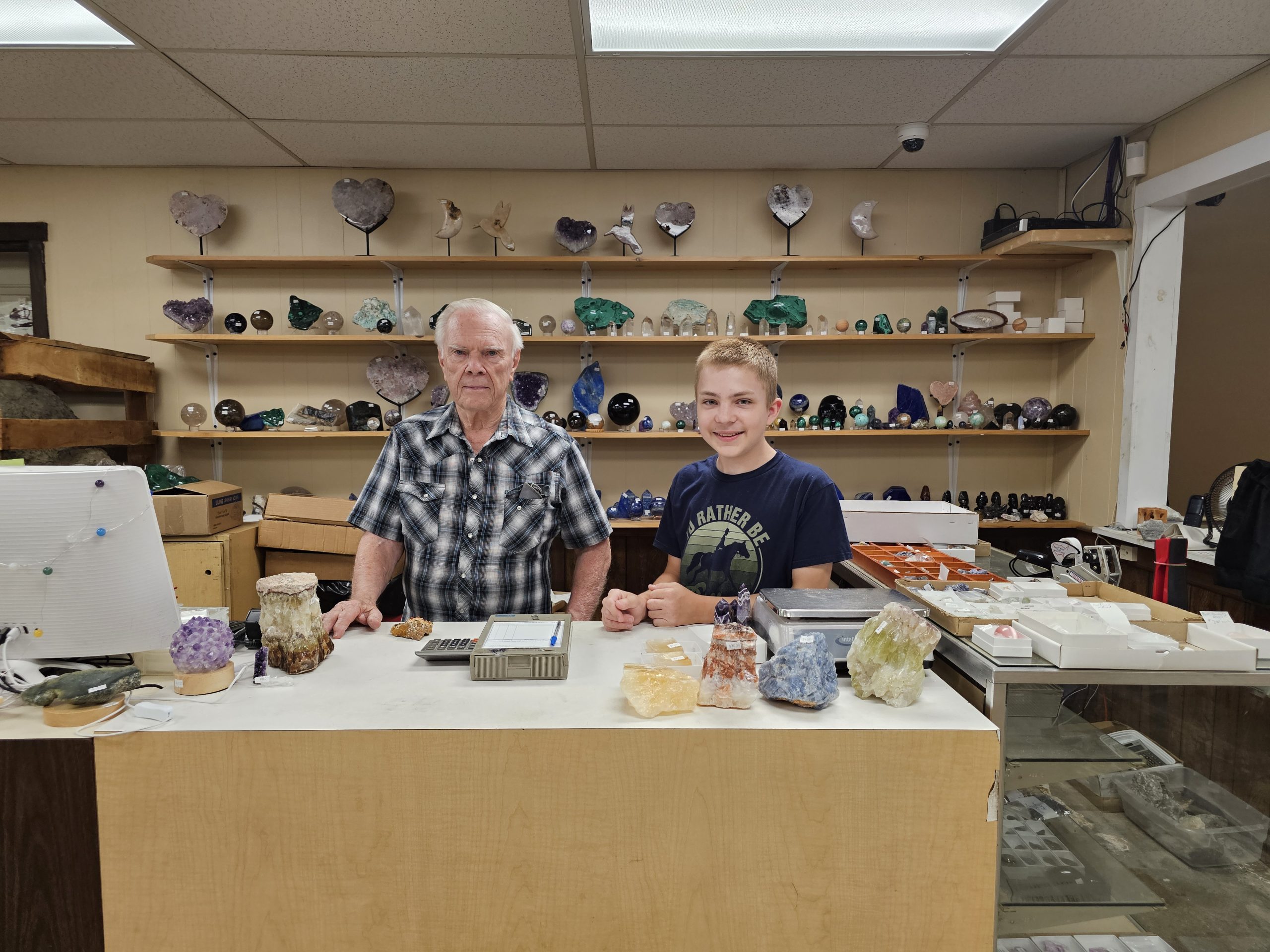 Since 1961, our family-owned business has been a supplier of rocks, minerals, fossils, crystals, faceted stones, cabochons, beads, and jewelry. Starting on the family farm, James expanded to our current building in 1981. The shop has changed and grown over the years to the now 8,000 square feet of showrooms.