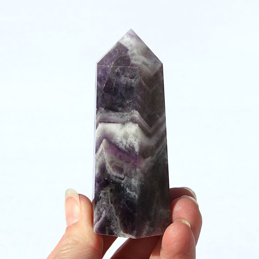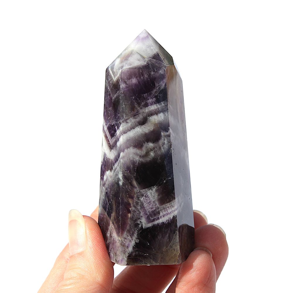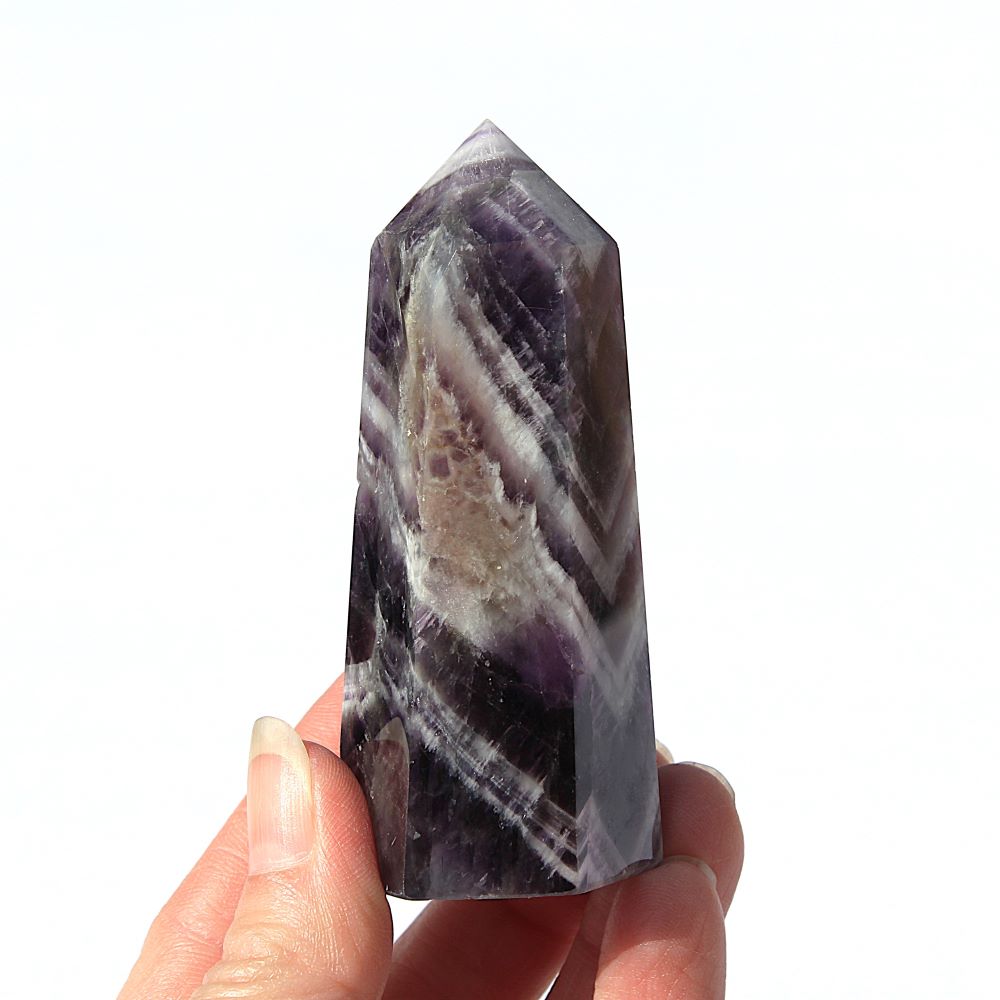 | Product Description | Chevron Amethyst Tower This piece has beautiful coloring and patterning |